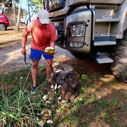8 Uhr schon 25 Grad. Wir fahren die Küste entlang. An einer Tankstelle treffen wir ein deutsches Wohnmobil. Katharina und RomanRead more