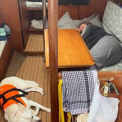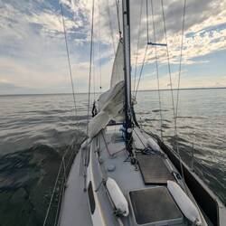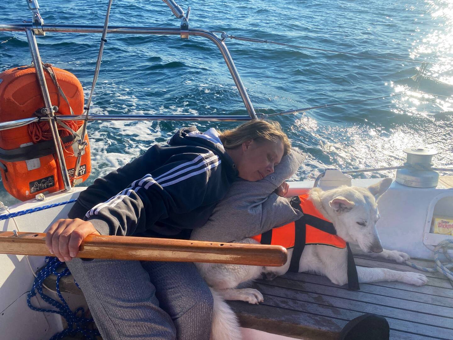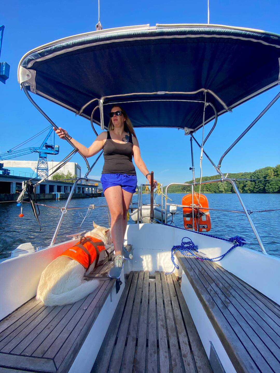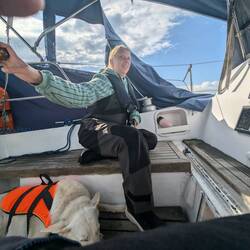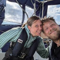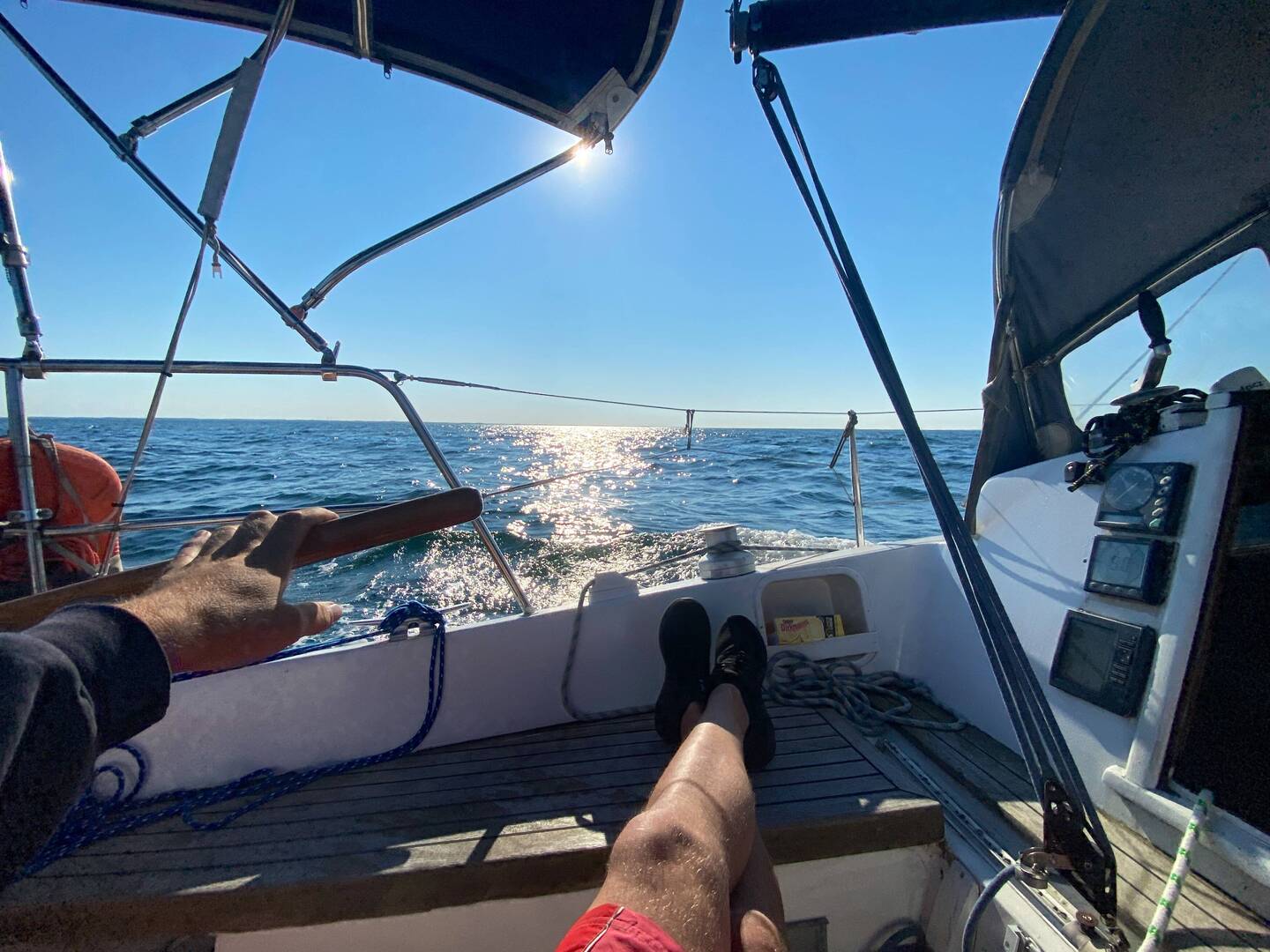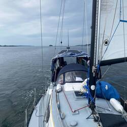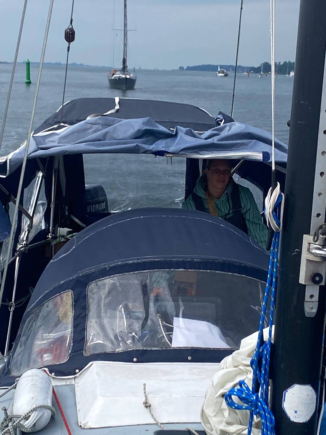 Wir haben ganz schön eins auf unseren Hintern bekommen aber Nicole hat jetzt bei besten Wetter übernommen und ich prüfe mal Boot Segel und Maschine