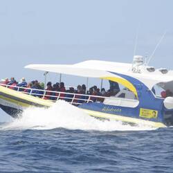 … achja, ihr fragt Euch sicher, was das Meer macht, es war heute ruhig, meinten die Guides, gestern war es unruhiger, wir durften daher nur Wellen bis zu 3 Metern genießen. Das Boot war ausgestattet mit drei Außenboardmotoren und gab dem Boot ordentlich Schub und ließ uns die Berge und Täler des Meeres richtig genießen.