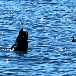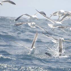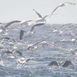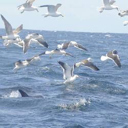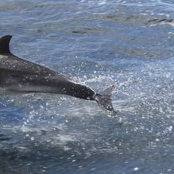 Danach ging es aufs offene Meer, das erste Boot, das immer etwas voraus war, vermeldete eine Albatrossansammlung, die sich dort versammeln, wo sich Delfine befinden um zu jagen. Was übrig bleibt, bringen die Delfine an die Wasseroberfläche und die Albatrosse bedienen sich, ein schönes Schauspiel. … auf dem Weg dorthin stießen wir auf eine andere Ansammlung Delfine, die sich einen Spaß daraus machten mit unseren 2 Booten (eigentlich waren drei Boote gestartet, aber das dritte war länger bei den Seelöwen) zu spielen, ein herrliches Schauspiel dieser eleganten Tiere. Die Fotos spiegeln das hoffentlich ein wenig wider.