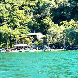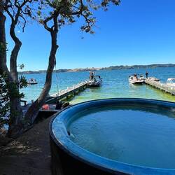Direkt im Anschluss ging es nur wenige hundert Meter entfernt auf ein Boot und quer über den See zu den Hot Pools. Diese sind nur per Boot oder Flugzeug (Wasserflugzeug) erreichbar.