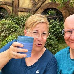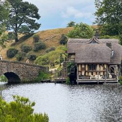 Die Maschinerie der Touren läuft wie ein super geöltes Triebwerk, im 10 Minuten Takt werden Busladungen vom Ticket und Merchandising Center nach Mittelerde gefahren und von einem Guide in gut 2 Stunden über das Gelände geführt und mit allerlei Anekdoten und Geschichten rund um das Gelände und die Filme gefüttert … achja, gefüttert, der Grüne Drache ist tatsächlich immer noch ein Ausschank, wir gönnten uns ein leckeres Gingerbier (natürlich alkoholfrei) und einen Gemüse-Pie, der, völlig untypisch für Neuseeland, vegan war.