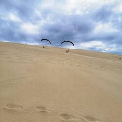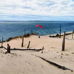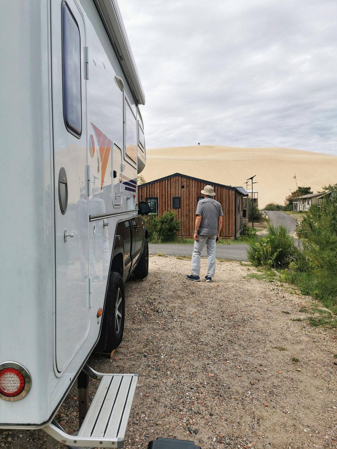 Gegen 11 Uhr verlassen wir den Campingplatz und fahren zu der Dune du Pilat auf den Campingplatz de la Dune. Es gibt noch zwei freie Plätze und gerne nehmen wir einen davon. Direkt an der Düne. DannLäs mer