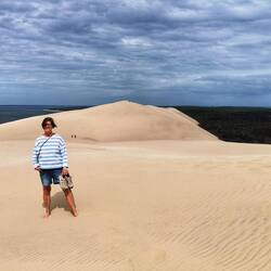 Heute sind wir mit dem Bus nach Arcachon gefahren und dann weiter mit der Fähre zur Halbinsel Cap Ferret mit dem Boot. Dort sind wir gewandert bis wir die Dune du Pilat von der anderen Seite ausLäs mer