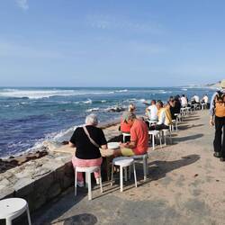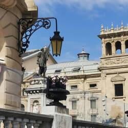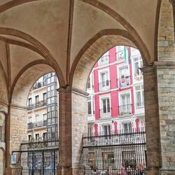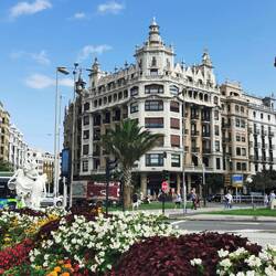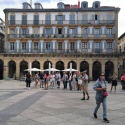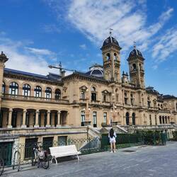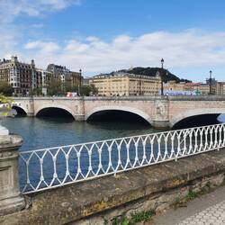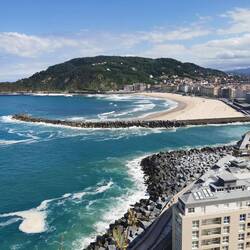 Mit dem Zug fahren wir nach Gros ein Stadtteil von San Sebastian. Wir sehen uns das Theater, ein bekanntes Hotel Maria Christina und einige Kirchen an. Dann gehen wir den Berg hinauf wo oben eineLäs mer