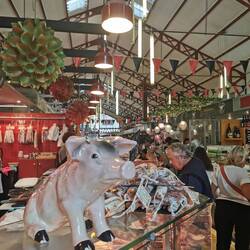 Wir fahren mit dem Bus nach Biarritz und sehen uns die Stadt an. In der ganzen Stadt ist ein riesiger Markt mit Lebensmitteln, Klamotten, Geschenkartikeln und vieles mehr. Es gibt auch wieder eineLäs mer