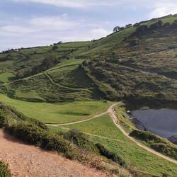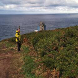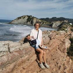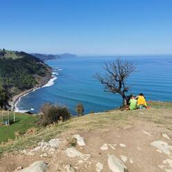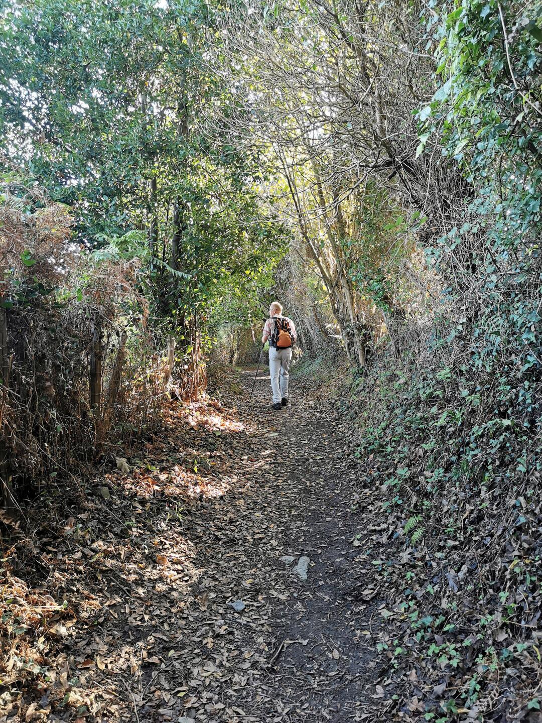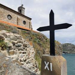Wir fahren mit dem Zug nach Deba und wandern ein Stück auf dem Jakobsweg nach Zumaia zurück. Allerdings von Santiago de Compostela weg, nicht hin. Wir treffen viele Pilgerer und eine Frau brichtLäs mer