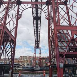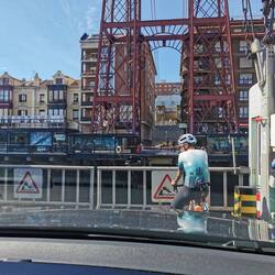 Nachdem wir sehr schlecht geschlafen haben weil es stark geregnet hat und Gewitter gab, fahren wir morgens Richtung Bilbao. Dort gibt es eine Brücke mit einer Schwebefähre, die Puente de Vizcaya.Läs mer