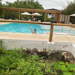 Unsere Unterkunft ist einfach aber es spielt sich meistens alles draußen ab. Vom Frühstück über Schwimmen oder einen Drink Abends an der Hotelbar.