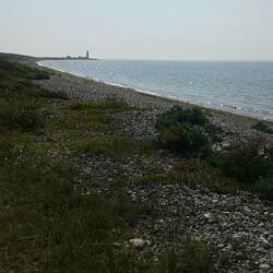 Dan hebben we alles wel zo'n beetje gezien en lopen we, op advies van de zeer vriendelijke havenmeester, over een pad langs de zee terug naar de haven die inmiddels helemaal vol ligt, we zijn blij dat we vroeg zijn gaan varen...