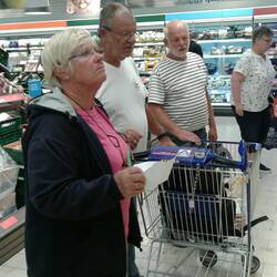 De boodschappen ploeg stapt op de fiets om naar een industrieterrein te fietsen waar de Aldi is, er wordt gewikt en gewogen, gezocht en gevonden en tot slot betaald om weer op de fiets terug naar de boten gaan waar de inkopen worden goedgekeurd en we met z'n allen nog een poosje op het terras zitten tot de havenmeester komt en wij allemaal voor twee nachten mogen betalen...Les mer