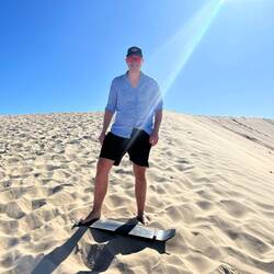 Heute Morgen haben wir beim Pioneer Lookout gefrühstückt – es gab Wraps. Danach ging es zum Stockton Beach, wo wir beim „4WD Tours RUS“ Sandboarding gemacht haben – richtig coolesBaca selengkapnya