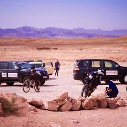 Überall Staub, wenig Essen,aber wir haben Spaß. Der Kamelritt in die Wüste ist für Übermorgen reserviert.