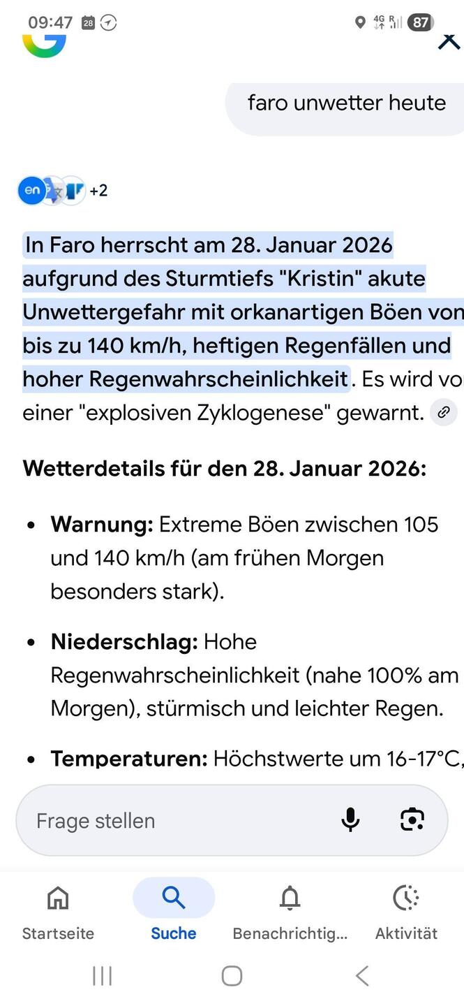 Heute Nacht zog das 3. Sturmtief innerhalb einer Woche durch Portugal. Nach Ingrid und Joseph jetzt Kristin.