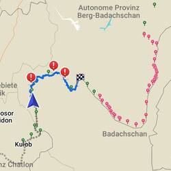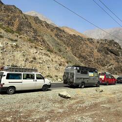 Wir verlassen unseren Tank & Rast PLATZ und bewegen uns Richtung Pamir - immer entlang dem Panj River. von 200 km die wir schaffen wollen, sind 30 km gute Straße, danach kommt nur noch Baustelle undBaca selengkapnya