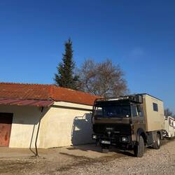 Wir reisen nach Bulgarien 🇧🇬 - dort wohnt eine Bekannte von Hanspeter und wir gönnen uns ein Zimmer mit Dusche und Tisch und Küche. Nachts um 3 Uhr bin ich mit Fando ins Wohnmobil umgezogen.Læs mere