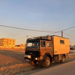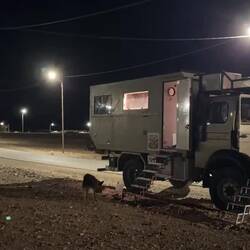 Nach ca 300 km, zuerst Richtung Erbit danach Richtung Bagdad, wurde es schnell dunkel. Ich hatte viele Erledigungen rund um Luma ( Magirus ) und Fando zu tuen. Damit habe ich das Abendessen verpasst.Baca lagi