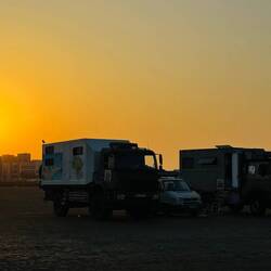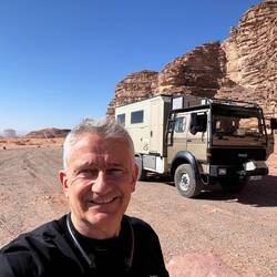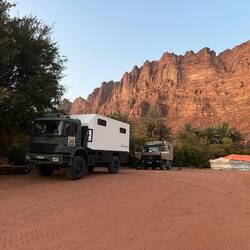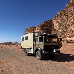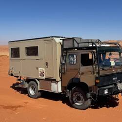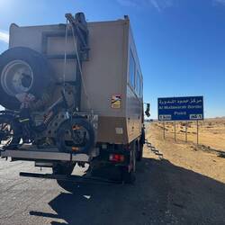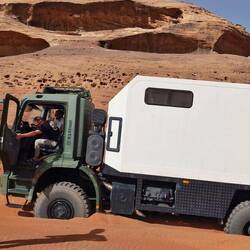 Ein Tag in der Wüste und Erfahrungen mit dem Magirus sammeln – am Anfang will mein Allrad sich nicht zuschalten lassen, und so fahre ich alles ohne Allrad - und sogar den Berg hoch – jedoch beimBaca lagi
