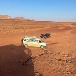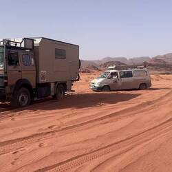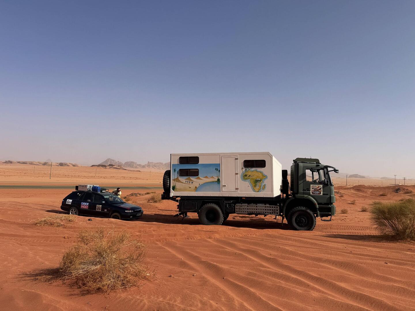 Übernachtung in der Wüste 🐪 - nach einer lehrreichen Anfahrt mit Bergung und einer Einladung zum Tee bei Mohamed kommen wir heute viel viel besser voran als gestern – der VW T4 Synchro und derBaca lagi