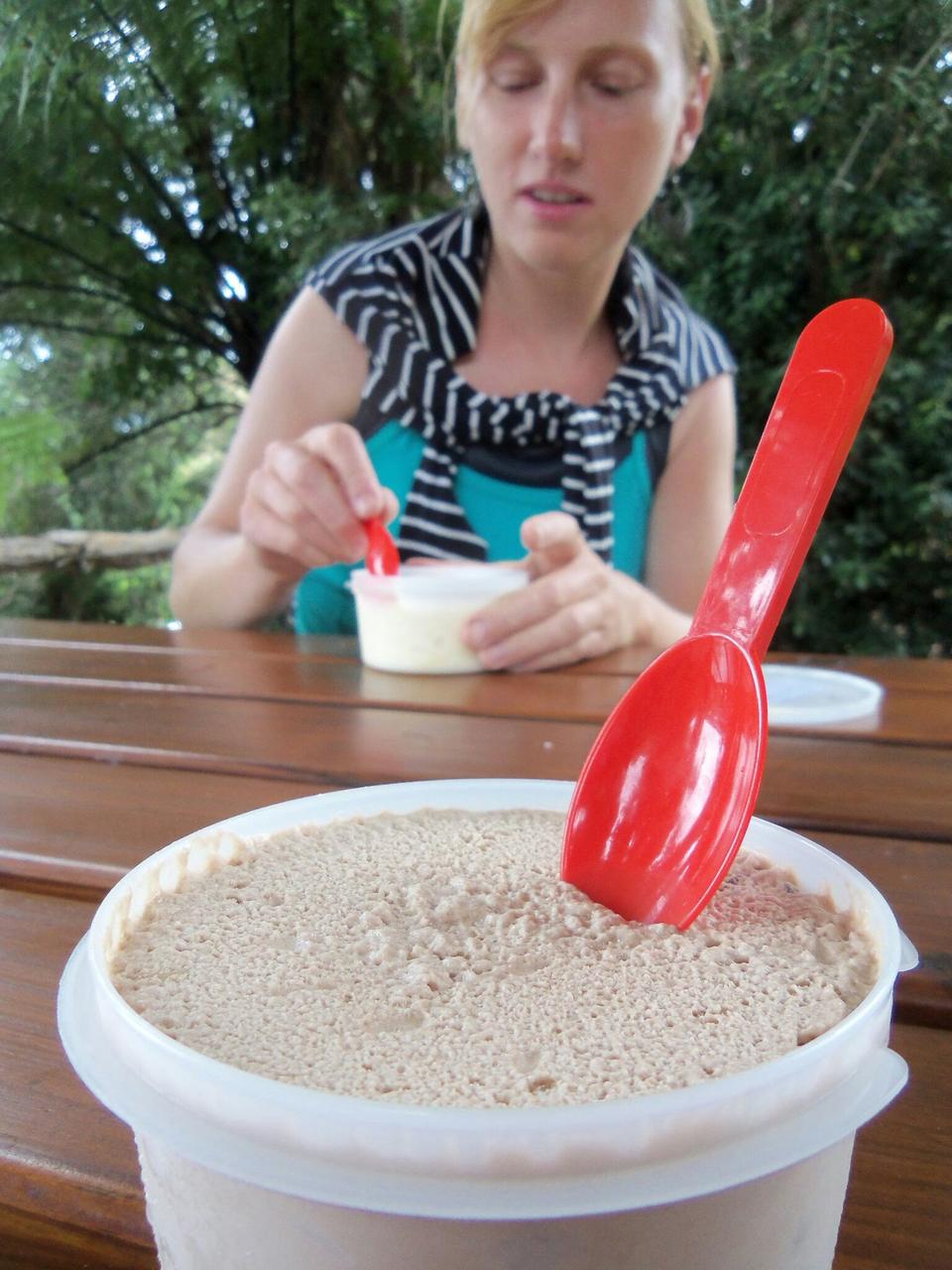 Na dalsi z rodinnych macadamovych farem nelze nezastavit. Stejne jako si nedoprat vytecnou domaci zmrzlinu - Helca makadamovo-medovou, ja makadamovo-cokoladovou (moje byla lepsejsi ;-)).