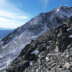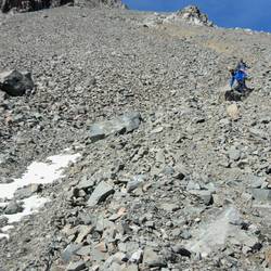 Rano jsme se vzbudili do stejne famozniho pocasi jako vcera. Azuro, bezvetri, idealni podminky pro vystup na Tapuae-o-Uenuku (2 885 m), nejvyssi NZ horu vne Jiznich Alp. Ze zacatku to slo dobre:Baca lagi