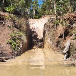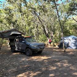 Bertie creek was lovely too, a lot of deep holes, but a rocky bottom if you could avoid them. A fair few kms on and we reached the Gunshot bypass which we could opt for instead of attempting the crossing. We went on and figured worst case, we could turn back. The main Gunshot track is a vertical drop, with a deep waterhole just after. It's one of those difficult crossings well known in the 4wd world. We passed a number of vehicles going the other direction which didn't fill me with confidence. When we arrived, we quickly saw why. There were numerous options to take, all pretty awful and steep. We had already planned on sticking around and watching a few people attempt it if we could. We weren't sure if we'd see anyone though, as the track had been surprisingly quiet, barely seeing anyone along the way. We watched a few tackle the main Gunshot track, it was pretty full on! Ben was tempted and as long as I wasn't in the car, it didn't bother me either way. I was chatting to another older lady as we were watching, who mentioned a slightly easier track off the side which we hadn't come across. We sussed it out and definitely seemed less deadly. I joked that if we were towards the end of our trip and needed to go back to work soon that we should do Gunshot and if it went wrong 'oh no, our car broke and we can't come into work' ha! However, being only 2 and a bit weeks in of 6-7, it's too early to risk it. The 'easier' track, was, however one of the back toolboxes copped a knock and is a bit out of shape, it wouldn't matter except it holds the dual battery charger. On we went where we found a ute in quite a bog hole, they didn't do Gunshot so thought they'd try some of the harder tracks along the way and got stuck. They had mates though and assured us they'd be right. We made it to Cockatoo creek, our original goal for the night, a relatively easy crossing as well, just needed to avoid some deep holes in a few sections. Up to the campsite which surprisingly has an undercover picnic area and a toilet.. which has no steps however. It's at Ben's shoulder, so not exactly something I'd like to climb if I desperately had to go to the loo. We found a nice spot and set up. Ben bashed the toolbox hoping to get it back to its original shape and added a strap to keep it shut as we have some deeper crossings coming up over the next few days. The creek is anti crocodile (apparently) and we saw a bunch of people having a swim when we crossed, so we headed down ourselves. The water was lovely! Peter and Ellen joined us for a drink, then we stayed a bit longer until our drinks ran out and the sun started to disappear. We've just had dinner, steak and salad (yes Ben eats salad now.. mostly Caesar, but it's an improvement).Leggi altro