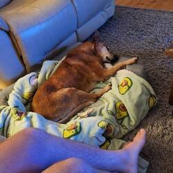 Pup moved funny last night and had a little cry, so we think he's twinged one of his back legs. Very sad boy, but he snuggled into 'his' bed just fine. He was pretty grumpy and hesitant to move aroundWeiterlesen