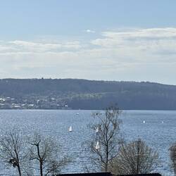 Vom Aussichtsturm gab es einen herrlichen Blick in alle Richtungen. Die Sonne spiegelte sich im See und die Natur war schon viel weiter als im 🦅 🏔. Überall hat es geblüht. 🌺 🌷 🌹