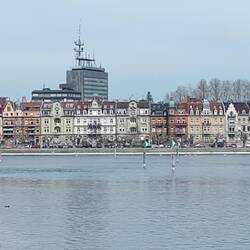 Nach einer guten und ruhigen Nacht, ohne die befürchtete Kontrolle durch das Ordnungsamt, sind wir dann mit dem Rad am See entlang nach Friedrichshafen gefahren.