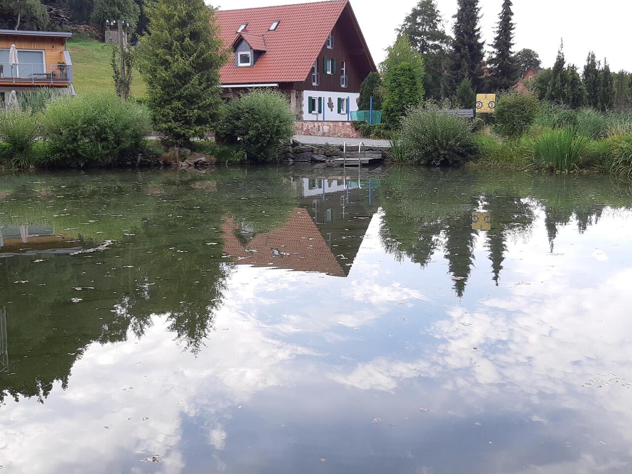 Nach dem Essen erkunden wir, schön nach Geschlechtern getrennt, das Gelände der Hessenmühle. Hier kann man auch Urlaub machen mit Hotel / Appartement, Schwimmsee, Sauna, Whirlpool...