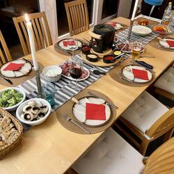 Der Jahreswechsel kam und Corona war immer noch da. Dann haben wir kurzerhand Bert und Papa eingeladen und einen gemütlichen Abend mit Fondue 🫕 verbracht.