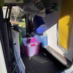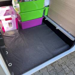 Das erste WoMo Projekt war die Heckgarage aufzuräumen. Jetzt ist wieder Platz und Ordnung.