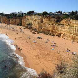 Von der Festung Santa Catarina sehen wir auf Praia da Rocha. Wenige Konservenfabriken liefern noch die Dosen mit den hier verarbeiteten Fischen aus.