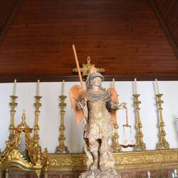 Auf dem Weg liegt diese Kirche mit blauen Kacheln im Innern. Außen ist der Heilige Laurentius, Schutzpatron der Köche, mit dem bei ihm angewandten Marter-Instrument, einem Eisenrost, dargestellt.