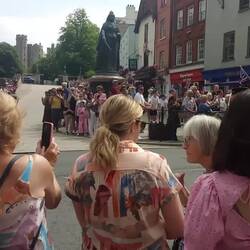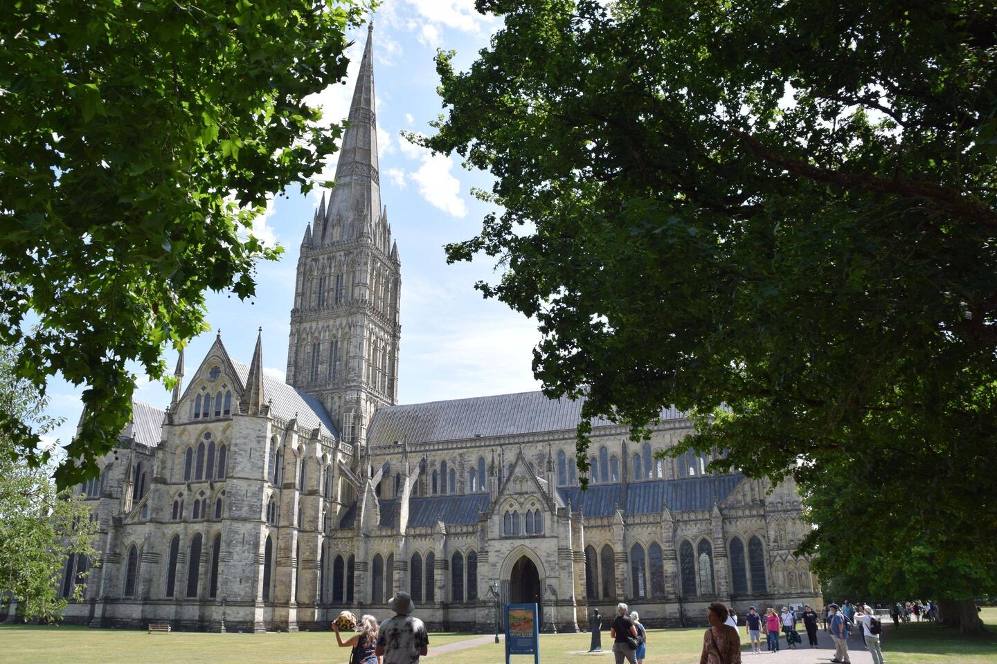 Am Fluß Avon (einer von den vielen) entlang schlendert man in Richtung Kathedrale. Ihr Kirchturm ist der höchste in England und von oben hört man einen Falken rufen. Unten steht ein Mann mit aufLeer más