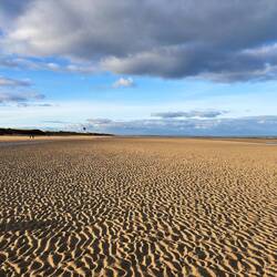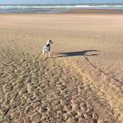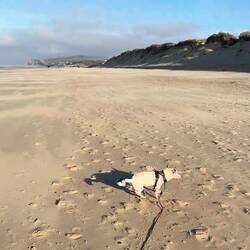 Mizzy hat sich richtig wohlgefühlt und war am Strand außer Rand und Band. Das Wetter war nicht durchgehend sonnig. Die aufziehenden Wolken haben aber immer wieder für tolle Bilder gesorgt. Der Wind war so kräftig, dass häufiger eine kleine Menge Sand über den Boden geblasen wurde.