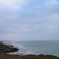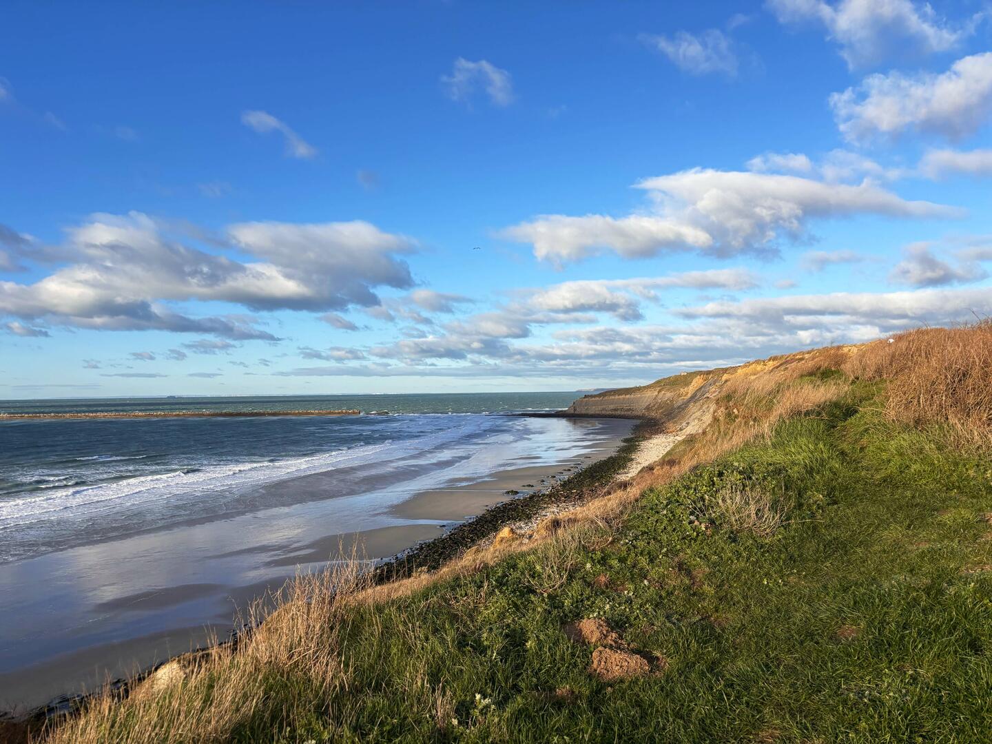Hier sind wir bei sonnigem und sehr windigem Wetter am Strand entlang bis zum Cap Blanc-Nez gewandert. Das Cap ist eine der bekanntesten und eindrucksvollsten Steilküsten Frankreichs und liegt an der Opalküste (Côte d’Opale). Der Name „Blanc-Nez“ („weiße Nase“) kommt von den hellen Kreidefelsen, die sich hier bis zu rund 130 Meter über dem Meer erheben.