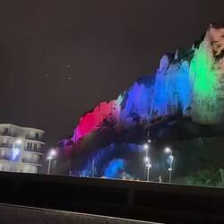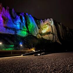 Um 20:30 Uhr sind wir noch einmal losgezogen – eigentlich nur, um den Ausblick oberhalb der Klippen bei Nacht zu genießen. Es hat uns dann aber doch in die Standseilbahn gezogen, und der Blick auf die beleuchteten Kreidefelsen war absolut lohnend. Dumm nur, dass die Bahn nur bis 20:45 Uhr in Betrieb ist. Somit mussten wir noch einmal viele Treppenstufen laufen.
