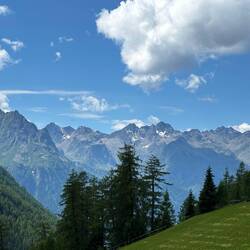 Nach dem Gipfel gestern stand heute eine Almentour auf dem Plan. Vom Campingplatz aus ging es ein Stück durch die Felder und dann auf einem durchaus schweißtreibenden Pfad hinauf in RichtungLeggi altro
