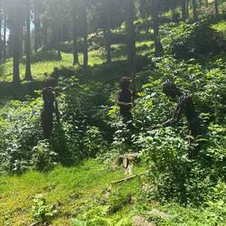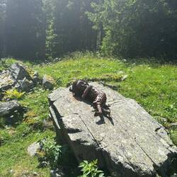 Wir sind am späten Vormittag vom Platz über den Sagenweg in Richtung Feuerstein aufgebrochen. Der Wanderweg erzählt an mehrerenLeggi altro