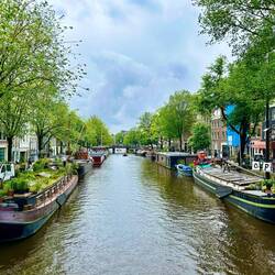 We decided to do some sightseeing which was very casual as we have been to Amsterdam before. Easier said than done though as the number of bicycles around are terrifying! I’m sure I saved Ted’s life more than once from being mowed down by a flying Dutchman. We are located near the Anne Frank House so we joined the surrounding crowds in getting a photo before continuing on. For lunch, we stopped at a Dutch pancake restaurant where I had an an apple and banana pancake with another coffee.
