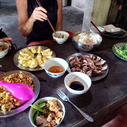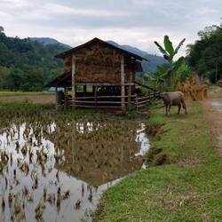 After beer stop we headed to a farmhouse for dinner the headed higher up through the paddy fields before coming back down a different trail through bamboo woods and streams and then back to theRead more