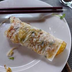 Slightly disappointed with the fish soup but everything else tasted fantastic , was shown how to make a fish roll as first attempt was a disaster lol