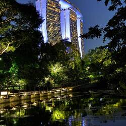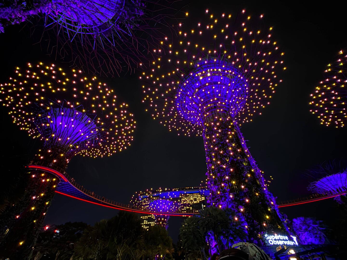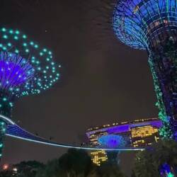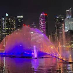 Und weil der Tag nicht schon anstrengend genug war, gab es abends noch eine Lichtershow (Supertrees in den „Gardens by the Bay“) und eine Wassershow (Marina Bay) am Heimweg😅