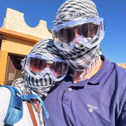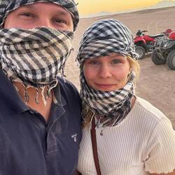 Heute haben wir erstmal ausgeschlafen und den Vormittag am Pool verbracht. Gegen 12 Uhr wurden wir von einem Fahrer abgeholt und in die Wüste gefahren.