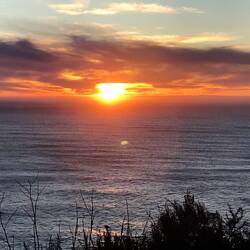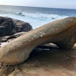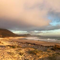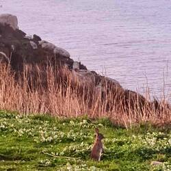 Wieder einmal ein Ende der Erde. Die Ziegen haben sich den schönsten Platz ausgesucht. Kaninchenbesuch beim Camper.