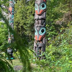 Nach einer kurzen Pause am Wohnmobil haben wir uns nochmal Richtung Stanley Park aufgemacht. Dabei dauerte es alleine über die Lions Gate Bridge wieder mehr als eine halbe Stunde. Es ging dann quer durch den Wald, an einem Sumpfgebiet (Beaver Lake), mindestens 3000 Eichhörnchen und einer sehr kontaktfreudigen Eule vorbei. Bis wir schließlich an einem mega coolen „Festival im Park“-Gelände vorbeigekommen sind. Hier haben wir etwas von außerhalb zugehört und uns gewundert, dass im Park generell sehr wenig los war. Auch hier gab es viele Picknicktische und Bänke - zusammen mit der sehr gut hörbaren Musik bei uns sicherlich ein Grund um viele Freunde zu treffen.