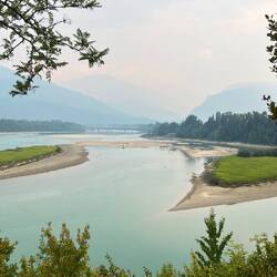 Am Straßenrand gab es von früheren Waldbränden Hunderte an Baumgerippen zu sehen. Dimensionen, die man sich bei uns schwer vorstellen kann. Kurz vor Kamloops wurde es dann sehr diesig, die Berge waren kaum noch sichtbar und in der Luft lag Brandgeruch. Wir haben also nur getankt und uns zur Weiterfahrt ins 220 km entfernte Revelstoke - unserem nächsten Ziel - entschieden.