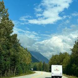 Der Fahrtweg nach Kamloops betrug ca. 360 km. Die Strecke führte mehrere Berge hoch und wieder runter - der Motor vom Wohnmobil klang etwas angestrengt und ständig wiesen Schilder auf die Winterreifenpflicht und das Mitführen von Schneeketten ab 1. Oktober hin.