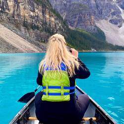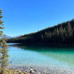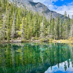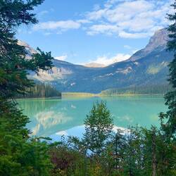 Auf der Fahrt von Golden nach Banff war ein Stopp am Emerald Lake im Yoho-Nationalpark Pflicht. Trotz unserer späten Ankunft um 17:30 Uhr konnten wir noch einige schöne Fotos machen, der Kanuverleih hatte jedoch gerade geschlossen. Alternativ hätten wir auch im 11 Grad kalten See schwimmen gehen können. Einige Leute waren sogar im Wasser - das war uns dann aber doch etwas zu abenteuerlich.